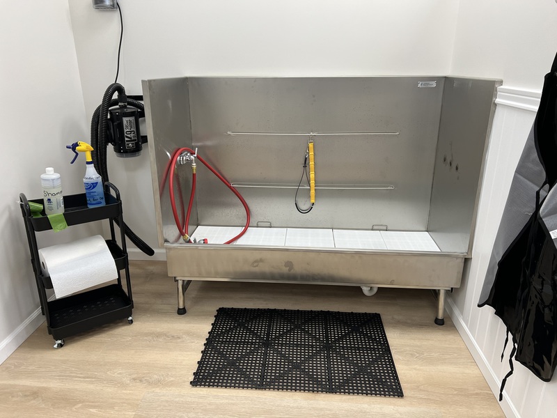 Our self-wash area is designed to make bath time simple and enjoyable—letting you bond with your dog while leaving the mess with us. Our friendly, knowledgeable staff is always happy to help, and we provide everything you need, including combs, brushes, leashes, harnesses, and more.