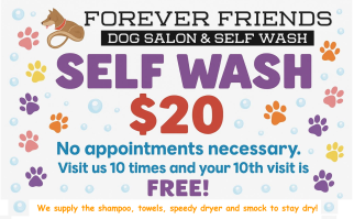 Forever Friends is now offering self-service bathing right next door from our existing grooming. Keep the mess out of your home when bathing your dog. We now offer all the bathing conveniences needed to bathe your own dog. We keep our tubs clean and disinfected. Our new facilities offer the following: